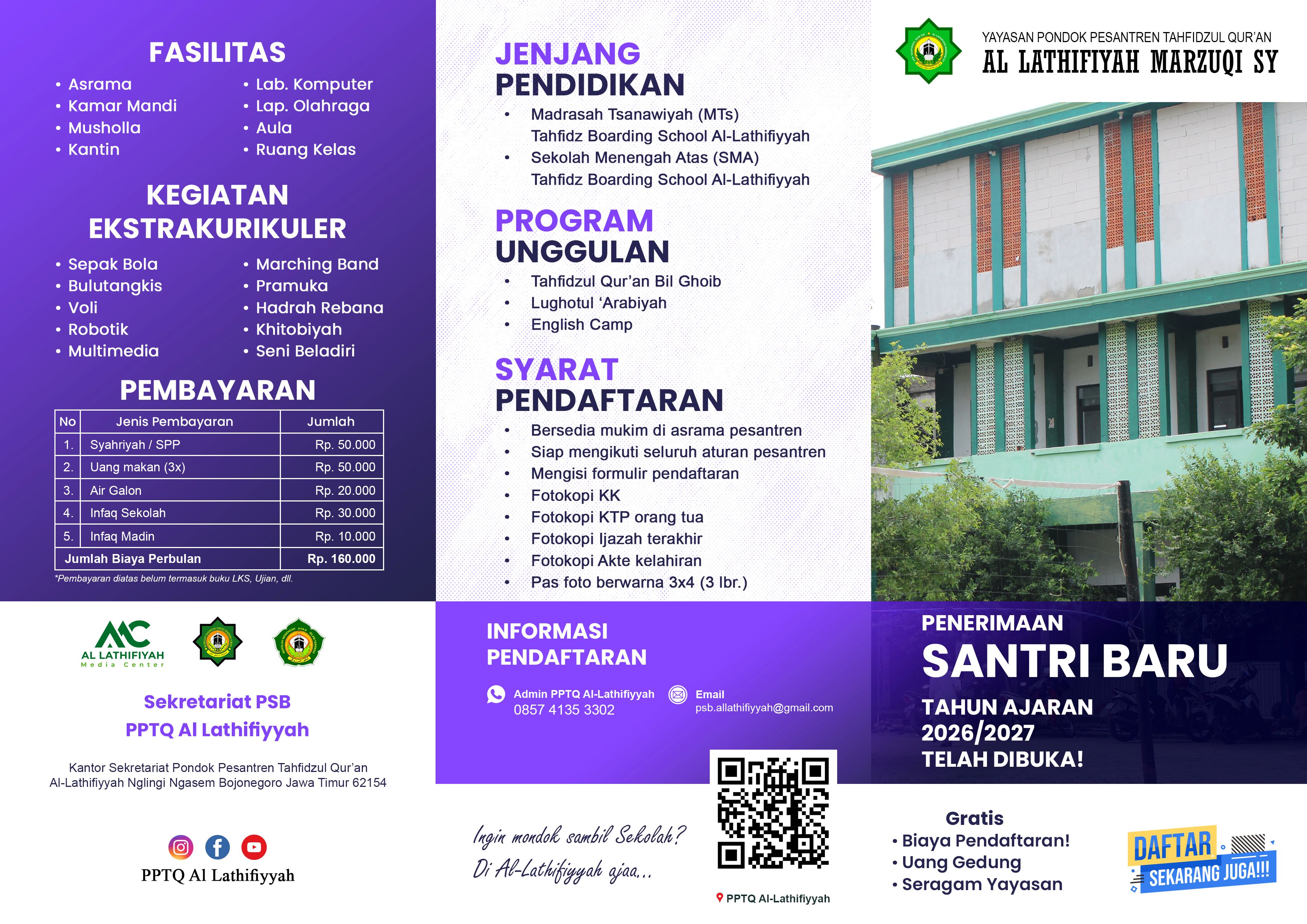Pondok Pesantren Tahfidzul Qur’an Al Lathifiyah Marzuqi Sy membuka Penerimaan Santri Baru (PSB) untuk Tahun Ajaran . . . 0